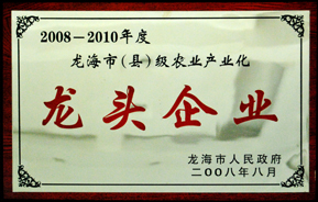 2008年8月被龍海市人民政府授予2008-2010年度龍海市(縣)農(nóng)業(yè)產(chǎn)業(yè)化"龍頭企業(yè)" |