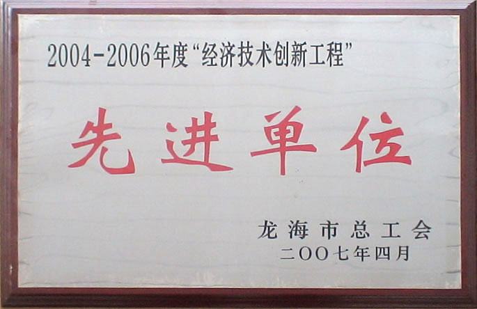 2007年4月 被龍海市總工會(huì)授予2004-2006年度"經(jīng)濟(jì)技術(shù)創(chuàng)新工程"先進(jìn)單位 |